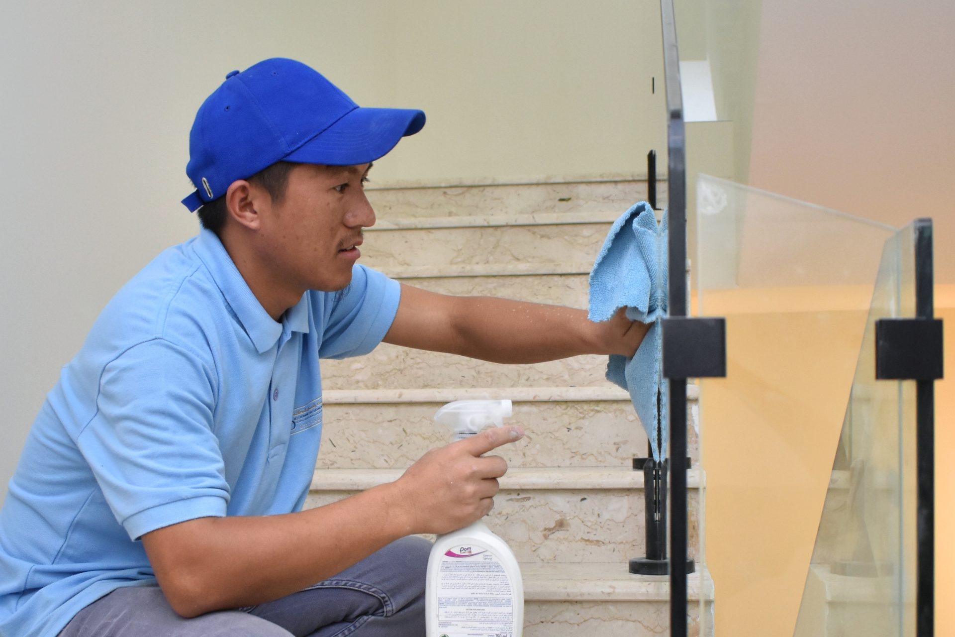 خدمة تنظيف الواجهات الزجاجية لتلميع وتطهير الزجاج من بيت البنيان